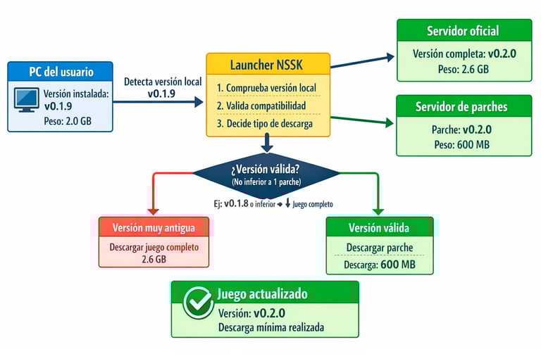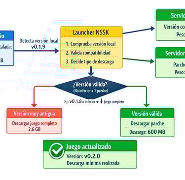 Este flujo está diseñado para ser automático, seguro y transparente, asegurando que el usuario siempre juegue con una versión estable y compatible.